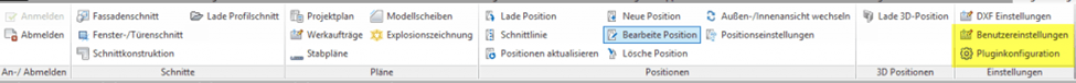 New in the plugin are the user settings and most of the functions in the “Positions” area. These are directly linked to LogiKal. Changes made here are automatically adopted in the LogiKal project.